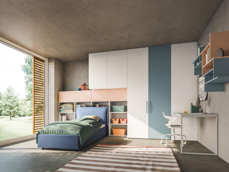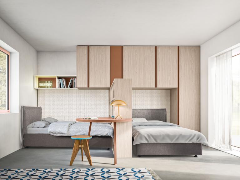 Camere e camerette per ragazzi. Soluzioni compositive con Letti a Terra, Composizioni a Ponte e Camerette Salvaspazio. Un universo di combinazioni spaziali, per l’arredo creativo ed innovativo della camera per i giovani.
