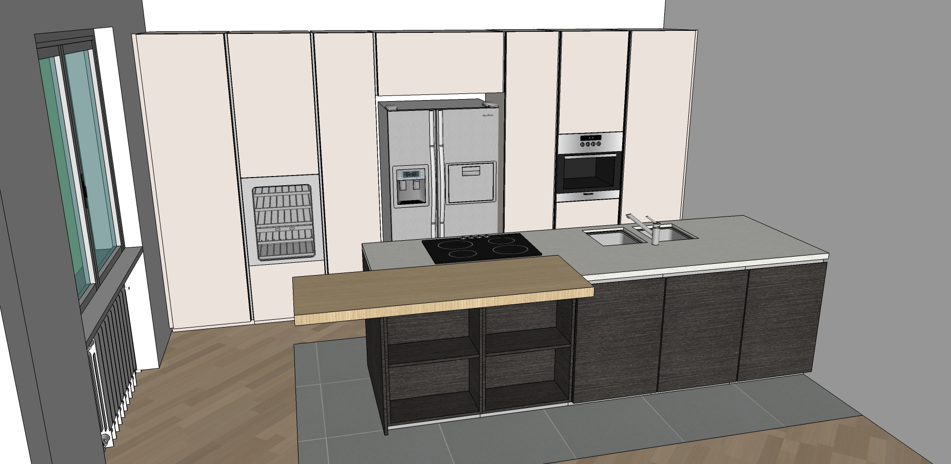 Nella sequenza di immagini potete notare l’evoluzione del progetto dai disegni iniziali alla cucina installata a casa del cliente.