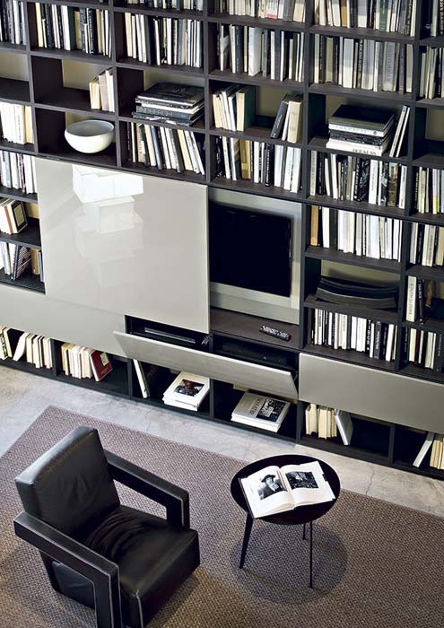E per chi cerca una libreria capace di accogliere le proprie collezioni, i vani con fondali in velluto e ripiani in vetro, creano quinte dal fascino seduttivo dove esporre gli oggetti più preziosi