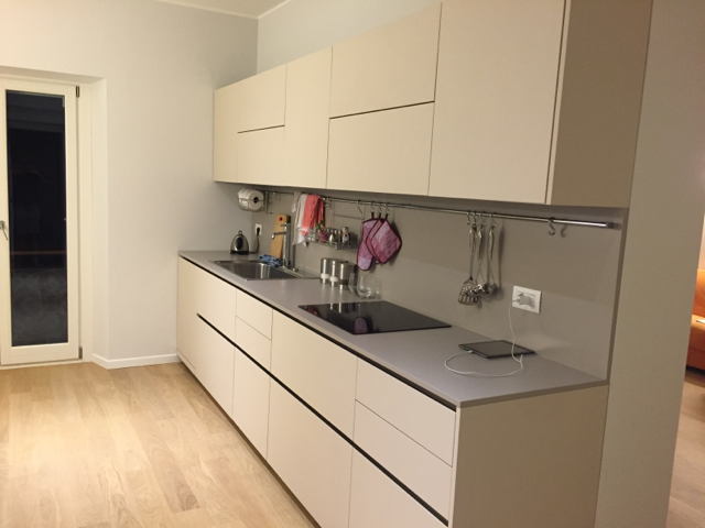 Realizzazione in zona Porta Venezia di una cucina Maistri mod.Viva di notevole eleganza e pulizia compositiva.