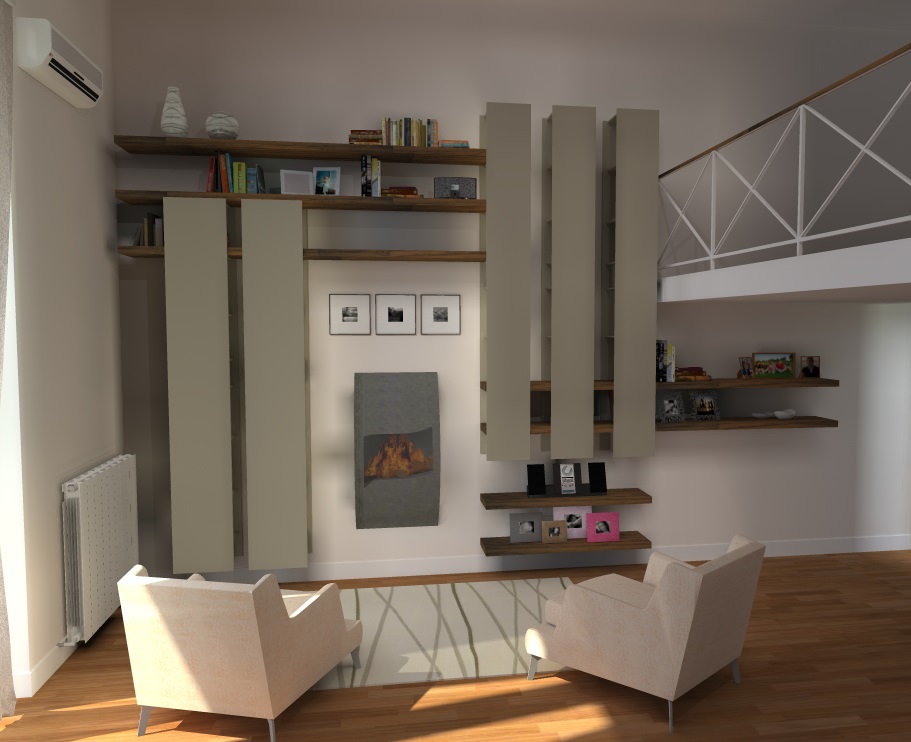 Bellissima composizione soggiorno realizzata con il programma Plinto di Former. L’inusuale altezza del locale ha permesso di esprimere al meglio il carattere del soggiorno, in una composizione che incornicia il camino e valorizza l’eleganza della location.